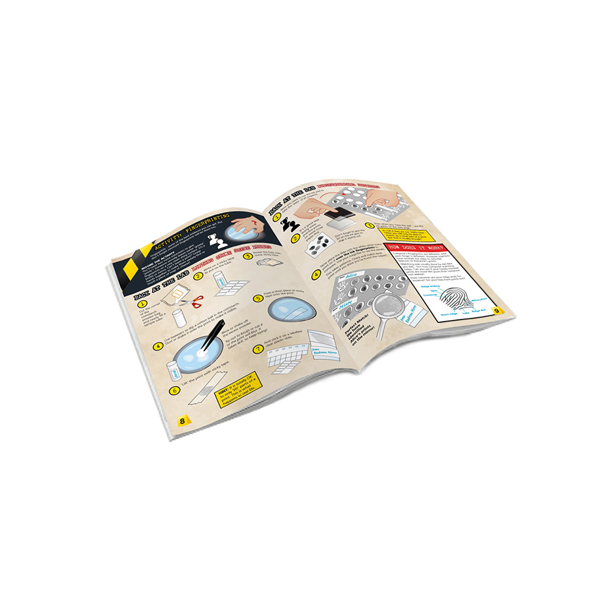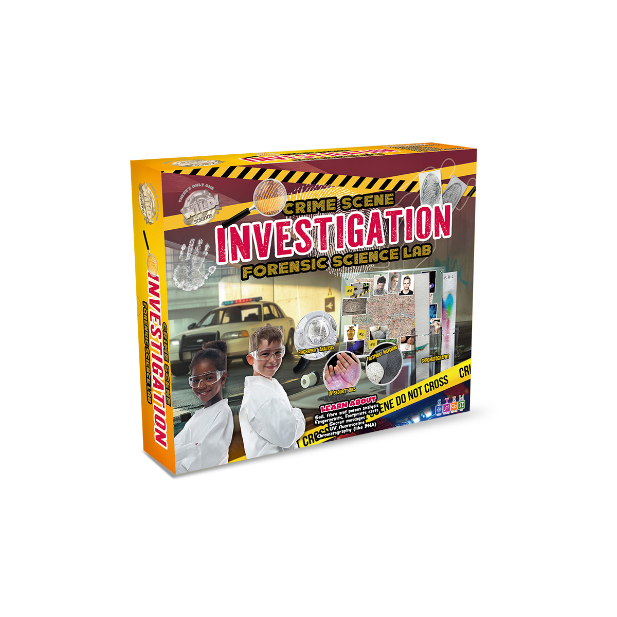 Use the magic of Chromatography to extract telltale colours from Crime Scene Notes (like DNA analysis). Special Indicators spot dangerous ACIDS and ALKALIS. Develop and Lift and Match fingerprints. Trap thieves with GLOW-in-the-dark inks. Collect Suspect Shoeprints, then compare to your crime scene Footprint Cast. Reveal Secret Messages. Who drove the getaway car? YOU will know using Cloth Fibre Analysis... and much much more.
